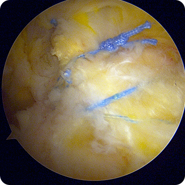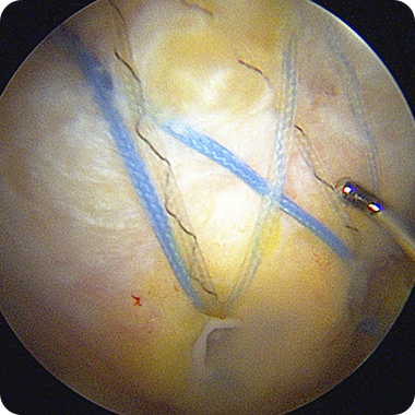 파열된 힘줄을 봉합하는 최소침습 수술입니다.
