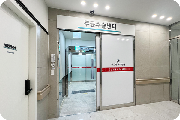 에스앤케이병원 무균수술센터는 헤파필터, 양압시스템, 청정 공기순환시스템을 갖춰 미세먼지와 세균을 차단해 감염 가능성을 최소화합니다. 또한 수술기구 멸균관리로 정밀하고 안전한 수술 환경을 유지합니다.
